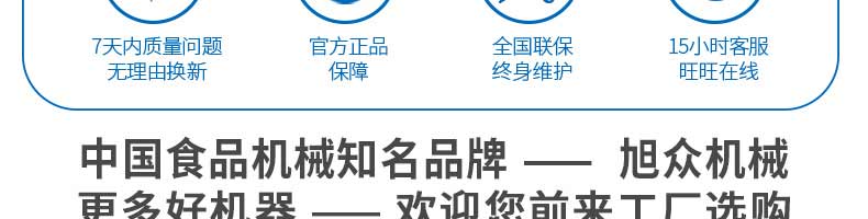 廣州旭眾食品機(jī)械有限公司是一家集科研開發(fā),生產(chǎn)設(shè)計(jì),營銷服務(wù)為一體的現(xiàn)代化生產(chǎn)企業(yè)?,F(xiàn)代化生產(chǎn)車間,精湛制造技術(shù),所產(chǎn)機(jī)械歷經(jīng)市場重重考驗(yàn),不斷贏得海內(nèi)外客戶的贊譽(yù)。