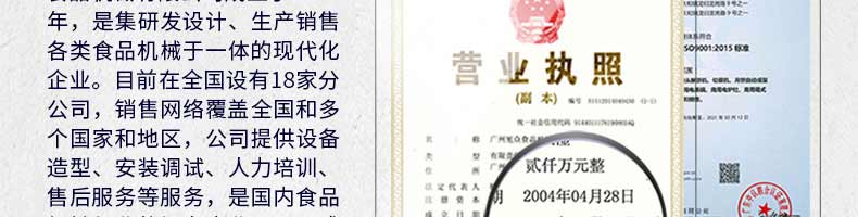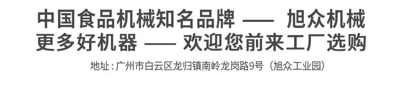 廣州旭眾食品機(jī)械有限公司是一家集科研開發(fā),生產(chǎn)設(shè)計,營銷服務(wù)為一體的現(xiàn)代化生產(chǎn)企業(yè)?,F(xiàn)代化生產(chǎn)車間,精湛制造技術(shù),所產(chǎn)機(jī)械歷經(jīng)市場重重考驗(yàn),不斷贏得海內(nèi)外客戶的贊譽(yù)。