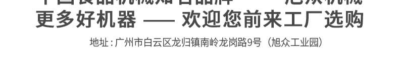 廣州旭眾食品機(jī)械有限公司是一家集科研開發(fā),生產(chǎn)設(shè)計,營銷服務(wù)為一體的現(xiàn)代化生產(chǎn)企業(yè)?,F(xiàn)代化生產(chǎn)車間,精湛制造技術(shù),所產(chǎn)機(jī)械歷經(jīng)市場重重考驗,不斷贏得海內(nèi)外客戶的贊譽(yù)。