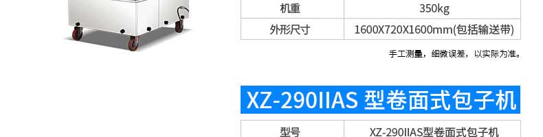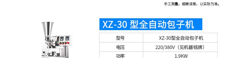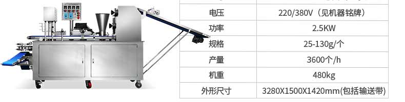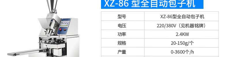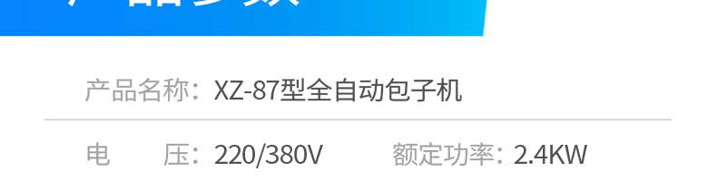 名稱XZ-87全自動包子機 電源220/380v 功率2.4kw 產量 尺寸1600*720*1600mm 重量390kg 規(guī)格20-150克/只 其他