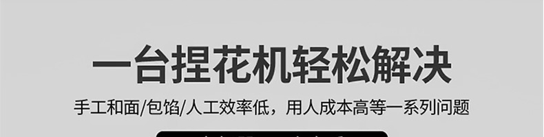 XZ-7200捏花機(jī),一臺捏花機(jī)輕松解決:手工和面包餡/人工效率低,用人成本高等一系列問題一臺機(jī)器=10個人手工,24折捏花·外形美觀仿手工多道壓面卷面皮,卷面式包餡成型,制品表面光滑。