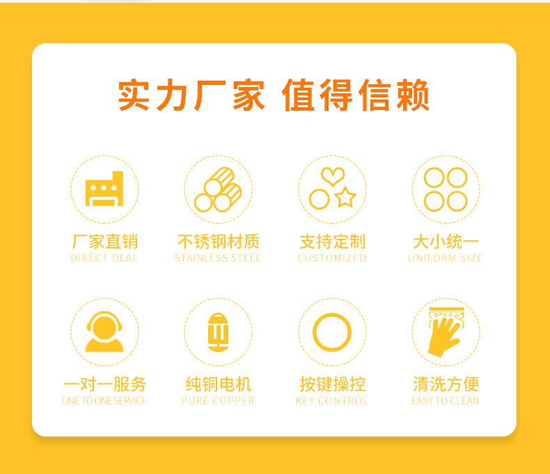廣州旭眾食品機(jī)械有限公司是一家集科研開發(fā),生產(chǎn)設(shè)計(jì),營銷服務(wù)為一體的現(xiàn)代化生產(chǎn)企業(yè)?,F(xiàn)代化生產(chǎn)車間,精湛制造技術(shù),所產(chǎn)機(jī)械歷經(jīng)市場重重考驗(yàn),不斷贏得海內(nèi)外客戶的贊譽(yù)。