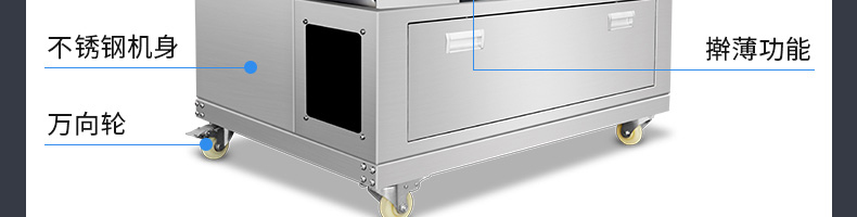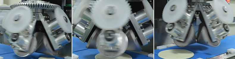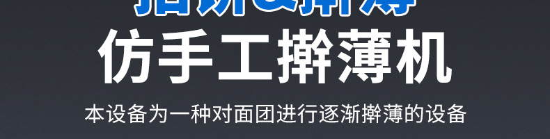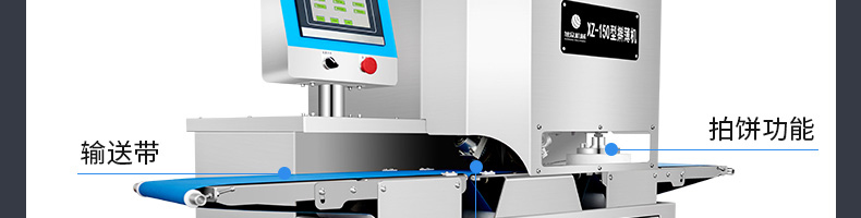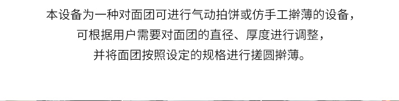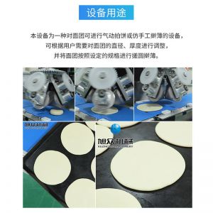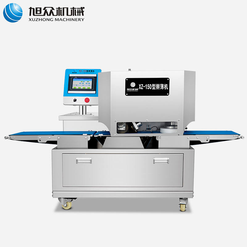 XZ-150型搟薄機,為一種對面團可進行氣動拍餅或仿手工搟薄的設備,可根據(jù)用戶需要對面團的直徑、厚度進行調(diào)整并將面團按照設定的規(guī)格進行搓圓摔搟薄。