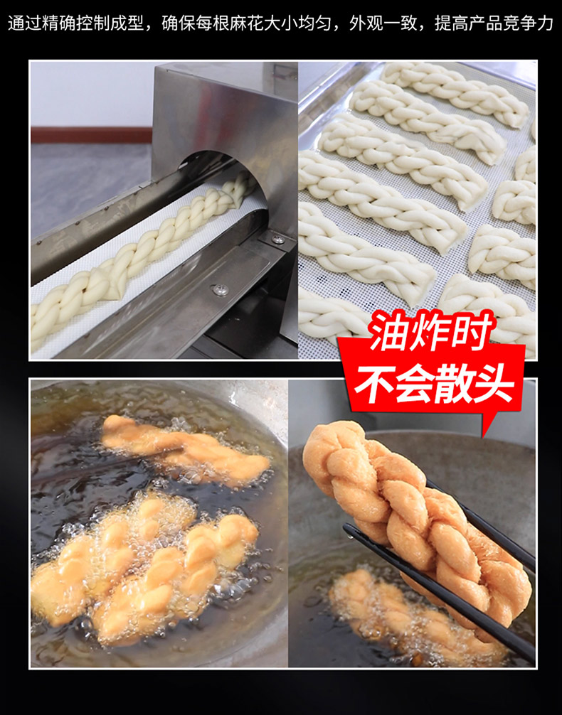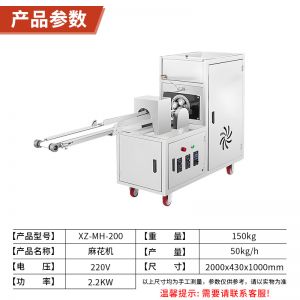 XZ-MH-200麻花機,技術支持、贈送配方、支持定制,1小時加工60斤麻花。切段均勺、且不粘面,麻花長短可調??赏ㄟ^調節(jié)切刀時間、控制麻花的長度。通過精確控制成型,確保每根麻花大小均勻,外觀一致,提高產(chǎn)品競爭力。