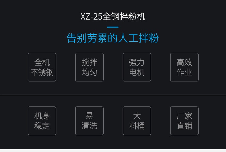 全鋼拌粉機(jī),告別勞累的人工拌粉,360°高效旋轉(zhuǎn)攪拌、均勻。無論是拌粉還是拌面絮,自動(dòng)拌粉、快速攪拌、攪拌均勻。
