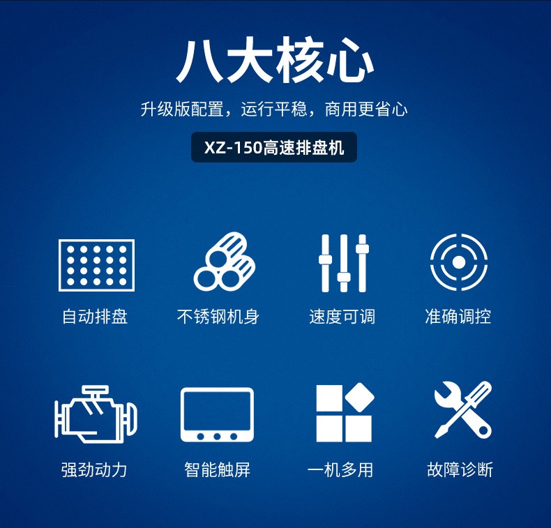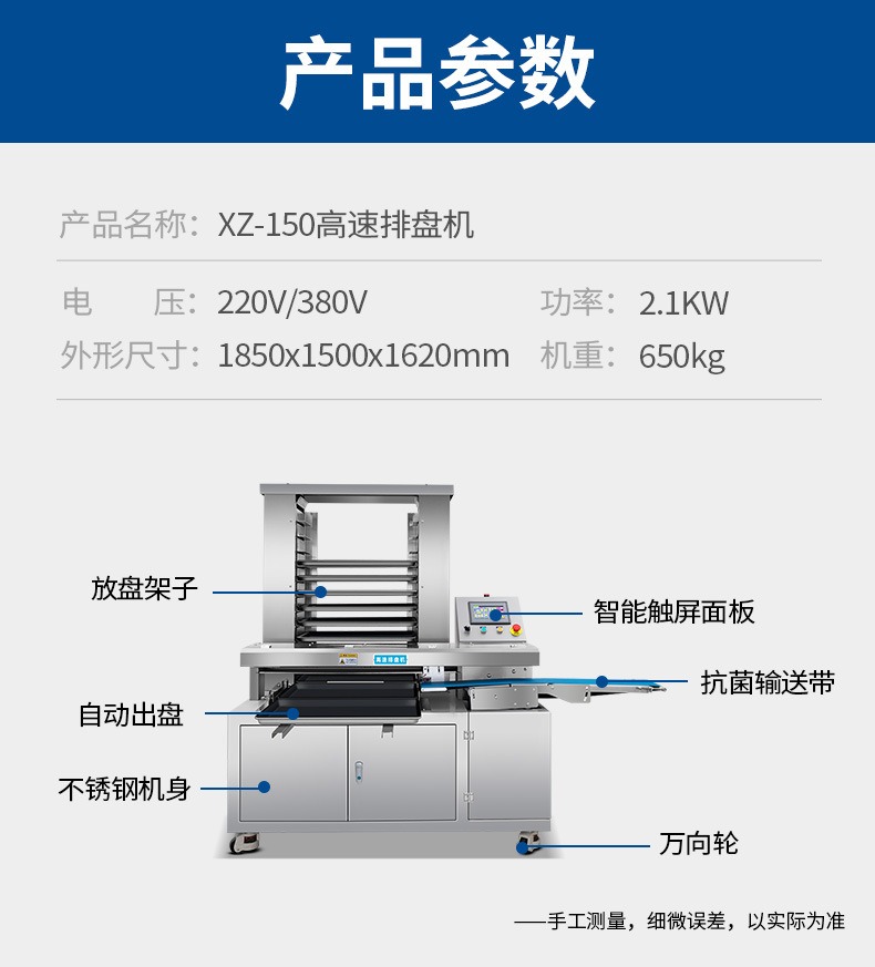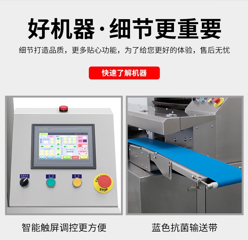 多功能商用高速排盤機,自動化程度高,可根據(jù)產(chǎn)品大小自由調(diào)節(jié)列數(shù)、排數(shù),自動將產(chǎn)品自動地排放在烘盤中,操作簡單,運行平穩(wěn)。智能觸屏面板??刂葡到y(tǒng)由三菱PLC和進口觸摸屏組成,操作簡單方便。具有故障自動診斷,一目了然。