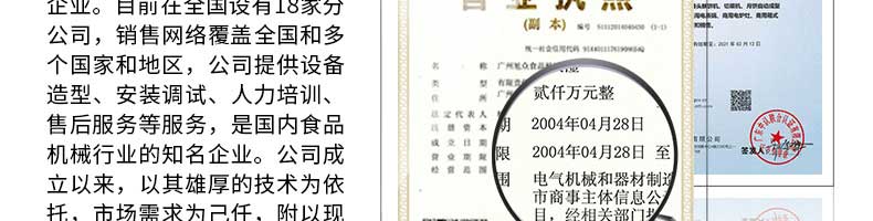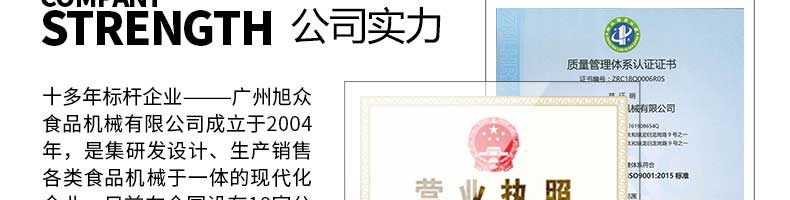 廣州旭眾食品機械有限公司是一家集科研開發(fā),生產(chǎn)設計,營銷服務為一體的現(xiàn)代化生產(chǎn)企業(yè)?,F(xiàn)代化生產(chǎn)車間,精湛制造技術,所產(chǎn)機械歷經(jīng)市場重重考驗,不斷贏得海內外客戶的贊譽。
