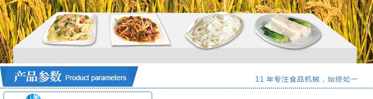 名稱(chēng)SZ-HF-250高效節(jié)能河粉機(jī) 電源220/380V 功率1.1/81kw 產(chǎn)量100/150/200/250kg/h 尺寸主機(jī)尺寸5500*1000*1050mm 外形尺寸5600*1200*1500mm 重量500kg 規(guī)格粉條寬度mm:4/6/8/10 其他