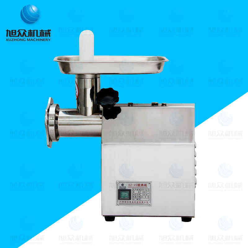 SZ-22 電動(dòng)絞肉機(jī),電動(dòng)絞肉機(jī)的??字睆綖?、8mm,本機(jī)優(yōu)點(diǎn)具有電耐用、方便快捷、結(jié)構(gòu)緊湊、外形美觀、操作方便、效率高、耗電少、清潔保養(yǎng)容易、安全衛(wèi)生等優(yōu)點(diǎn)。采用全封閉齒輪傳動(dòng),結(jié)構(gòu)緊湊,運(yùn)轉(zhuǎn)平穩(wěn),工作可靠,且維修方便;絞肉機(jī)頭及接觸食品的零部件都采用不銹鋼制造,安全無(wú)污染;機(jī)殼線(xiàn)條流暢,沒(méi)有可污的縫隙及無(wú)傷害操作者的銳邊,易于清潔。