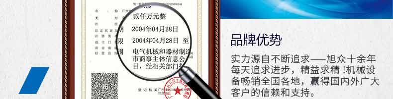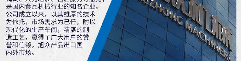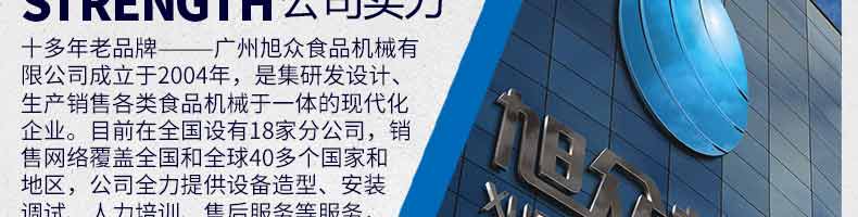 廣州旭眾食品機械有限公司是一家集科研開發(fā),生產(chǎn)設計,營銷服務為一體的現(xiàn)代化生產(chǎn)企業(yè)?,F(xiàn)代化生產(chǎn)車間,精湛制造技術,所產(chǎn)機械歷經(jīng)市場重重考驗,不斷贏得海內外客戶的贊譽。