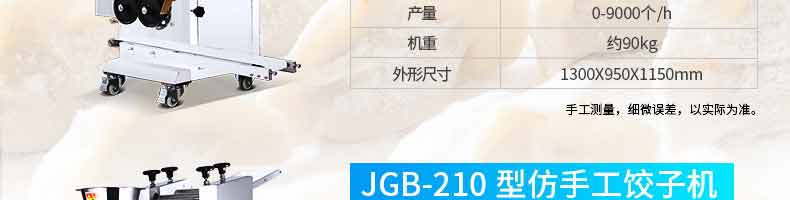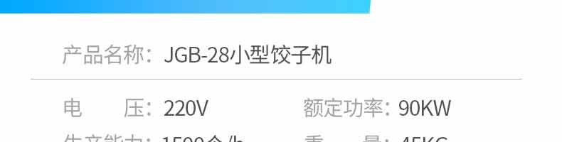 名稱28小型餃子機(jī) 電源220V 功率90KW 產(chǎn)量1500個(gè)/h 尺寸350*370*480mm 重量45KG 規(guī)格 其他