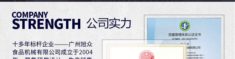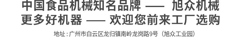 廣州旭眾食品機(jī)械有限公司是一家集科研開發(fā),生產(chǎn)設(shè)計(jì),營銷服務(wù)為一體的現(xiàn)代化生產(chǎn)企業(yè)。現(xiàn)代化生產(chǎn)車間,精湛制造技術(shù),所產(chǎn)機(jī)械歷經(jīng)市場重重考驗(yàn),不斷贏得海內(nèi)外客戶的贊譽(yù)。