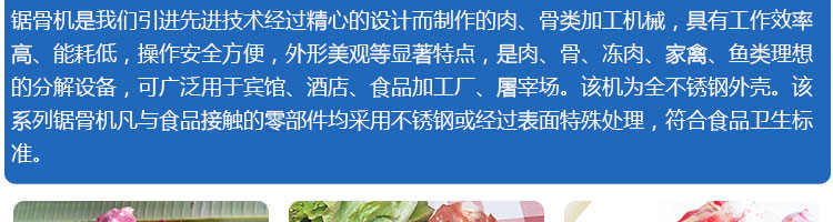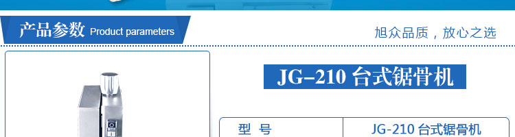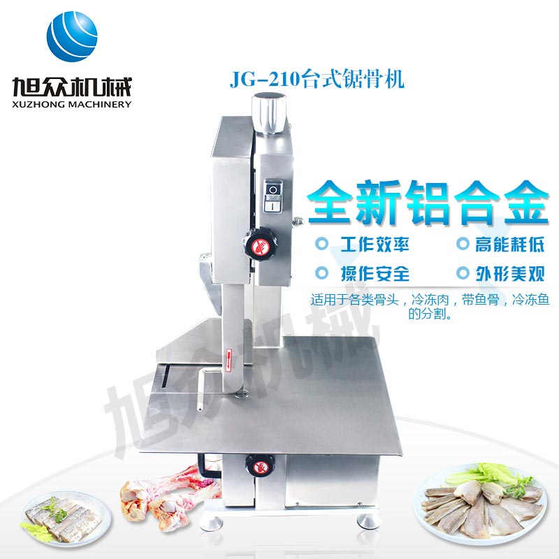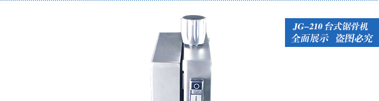 JG-210臺(tái)式鋸骨機(jī),適用于各類(lèi)骨頭,冷凍肉,帶魚(yú)骨,冰塊,冷凍魚(yú)的分割。采用全不銹鋼材料制作,具有工作效率高,操作安全的特點(diǎn)。廣泛適用于食品加工廠,屠宰場(chǎng),肉類(lèi)加工廠等