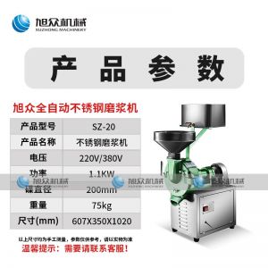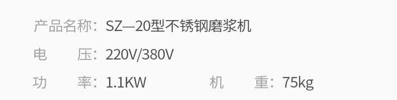 名稱SZ-20不銹鋼磨漿機(jī) 電源220/380v 功率1.1kw 產(chǎn)量 尺寸607*350*1020mm 重量75kg 規(guī)格 其他