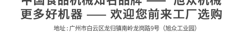 廣州旭眾食品機(jī)械有限公司是一家集科研開發(fā),生產(chǎn)設(shè)計(jì),營(yíng)銷服務(wù)為一體的現(xiàn)代化生產(chǎn)企業(yè)?,F(xiàn)代化生產(chǎn)車間,精湛制造技術(shù),所產(chǎn)機(jī)械歷經(jīng)市場(chǎng)重重考驗(yàn),不斷贏得海內(nèi)外客戶的贊譽(yù)。