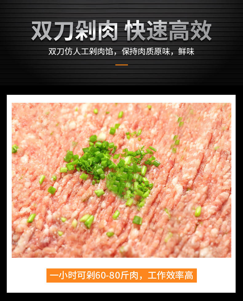 XZ-FL30剁肉機(jī),高效雙萬剁肉機(jī),輕松剁肉類、蔬菜、配料。仿人工剁肉、剁肉速度快、適用多場(chǎng)合。輕松搞定各種食材旭眾雙刀剁肉機(jī),讓你告別人工,高效剁各種食材。不銹鋼穩(wěn)定機(jī)身加厚不銹鋼板材,堅(jiān)固耐用,不易生銹,延長使用壽命