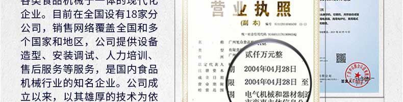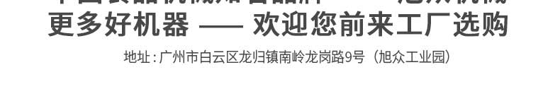 廣州旭眾食品機(jī)械有限公司是一家集科研開發(fā),生產(chǎn)設(shè)計,營銷服務(wù)為一體的現(xiàn)代化生產(chǎn)企業(yè)?,F(xiàn)代化生產(chǎn)車間,精湛制造技術(shù),所產(chǎn)機(jī)械歷經(jīng)市場重重考驗,不斷贏得海內(nèi)外客戶的贊譽。