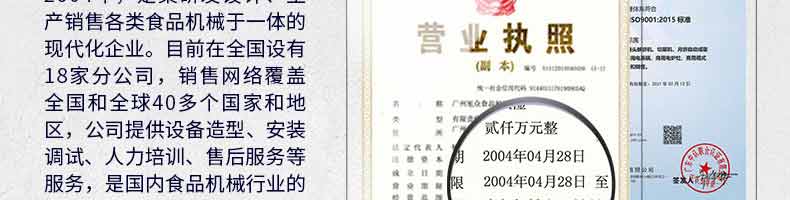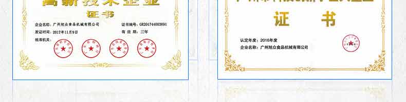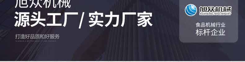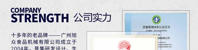 廣州旭眾食品機械有限公司是一家集科研開發(fā),生產(chǎn)設(shè)計,營銷服務(wù)為一體的現(xiàn)代化生產(chǎn)企業(yè)?,F(xiàn)代化生產(chǎn)車間,精湛制造技術(shù),所產(chǎn)機械歷經(jīng)市場重重考驗,不斷贏得海內(nèi)外客戶的贊譽。