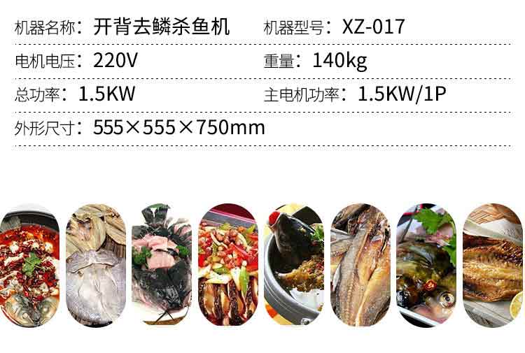 名稱XZ-017開背去鱗殺魚機(jī) 電源220V 功率1.5kw 產(chǎn)量 尺寸550×550×750mm 重量140kg 規(guī)格 其他