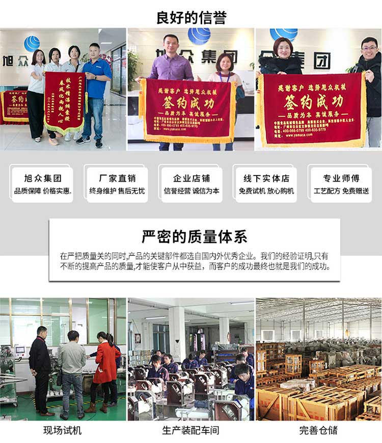 廣州旭眾食品機(jī)械有限公司是一家集科研開(kāi)發(fā),生產(chǎn)設(shè)計(jì),營(yíng)銷服務(wù)為一體的現(xiàn)代化生產(chǎn)企業(yè)?,F(xiàn)代化生產(chǎn)車間,精湛制造技術(shù),所產(chǎn)機(jī)械歷經(jīng)市場(chǎng)重重考驗(yàn),不斷贏得海內(nèi)外客戶的贊譽(yù)。