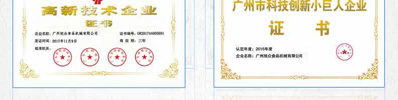 廣州旭眾食品機械有限公司是一家集科研開發(fā),生產(chǎn)設(shè)計,營銷服務(wù)為一體的現(xiàn)代化生產(chǎn)企業(yè)。現(xiàn)代化生產(chǎn)車間,精湛制造技術(shù),所產(chǎn)機械歷經(jīng)市場重重考驗,不斷贏得海內(nèi)外客戶的贊譽。