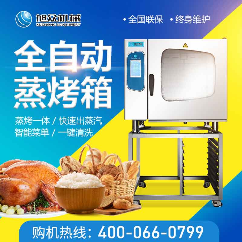 全自動(dòng)蒸烤箱,旭眾全自動(dòng)蒸烤箱,適用于餐館、酒樓、快餐店、超市、酒店、學(xué)習(xí)等。多層大容量,智能預(yù)設(shè)菜單,熱風(fēng)燒烤均勻出色