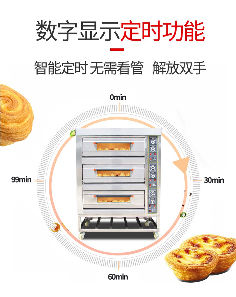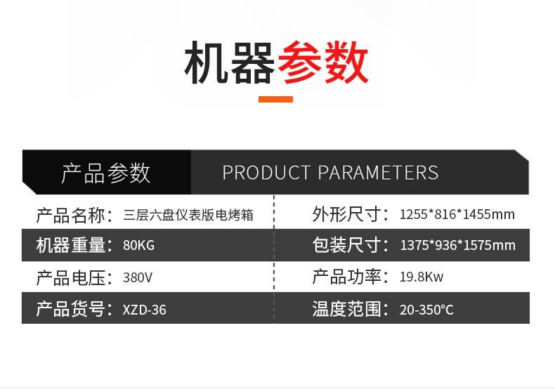 名稱三層六盤(pán)儀表版電烤箱 電源380V 功率19.8Kw 產(chǎn)量 尺寸1255*816*1455 mm 重量240KG 規(guī)格三層六盤(pán) 其他