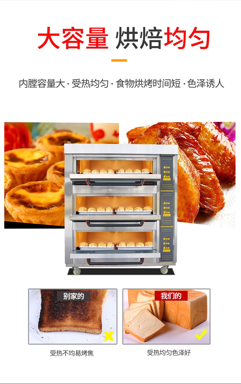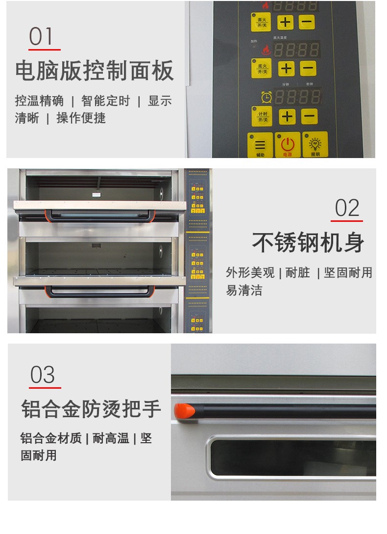 名稱三層六盤電腦版電烤箱 電源380V 功率19.8Kw 產(chǎn)量 尺寸1255*816*1455 mm 重量240KG 規(guī)格三層六盤 其他