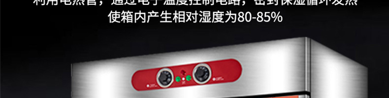VF系列醒發(fā)箱,熱風(fēng)循環(huán)、恒溫發(fā)酵。熱氣均勻分布,多盤發(fā)酵制作美味一樣到底。恒溫醒發(fā)箱完美解決利用電熱管,通過電子溫度控制電路,密封保濕循環(huán)發(fā)熱使箱內(nèi)產(chǎn)生相對(duì)濕度為80-85%