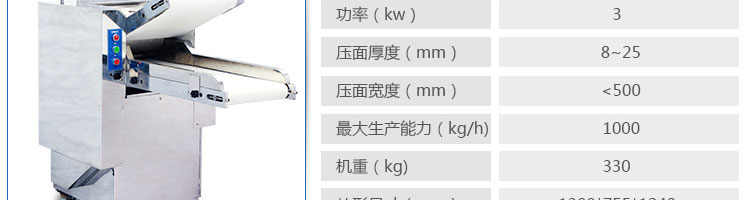 名稱500自動(dòng)壓面機(jī)系列 電源220/380V 220/380V 380V 功率1.5kw 1.5KW 3kw 產(chǎn)量 尺寸外形尺寸570*670*1110mm 620*670*1110mm 750*780*1180mm 重量120kg 125kg 320kg 規(guī)格 其他