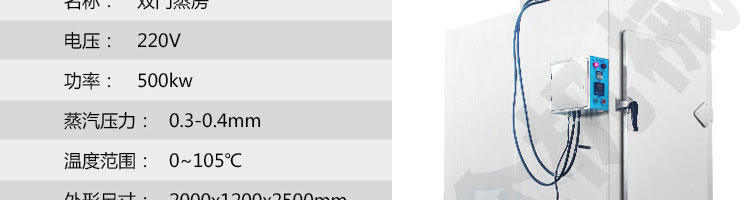 名稱大型蒸汽蒸柜(蒸包子的機(jī)器)-雙門 電源220v 功率500kw 產(chǎn)量 尺寸2000*1200*2500mm 重量 規(guī)格 其他